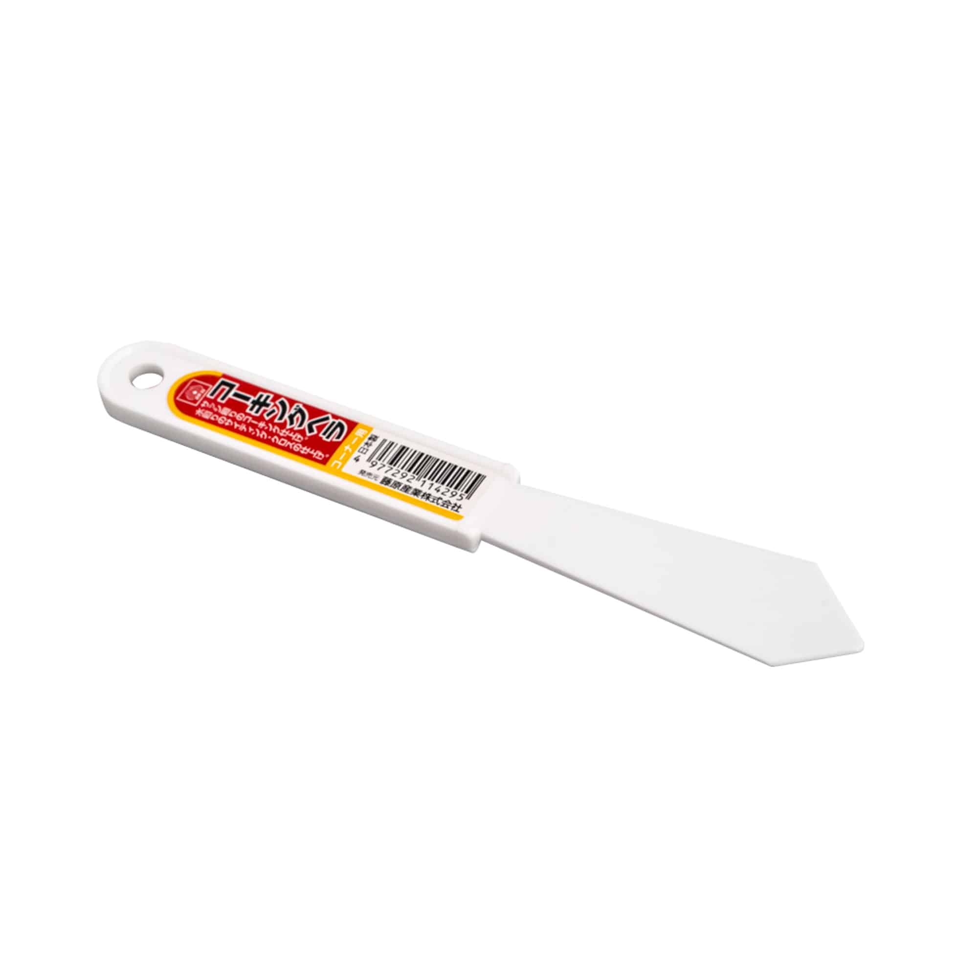 Pequeña espátula de punta triangular para trabajos de terminado de aristas y encuentros de paños pequeños tanto en superficies verticales como horizontales.